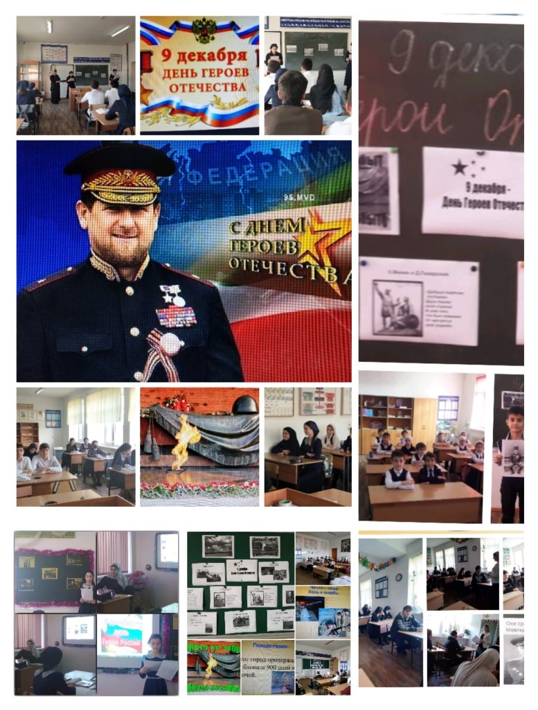 Учителя истории и обществознания провели уроки мужества, посвященные Дню Героев Отечества. На уроках обучающимся рассказали о героях, которые проявили мужество и отвагу и отдали жизнь за спасения нашей земли от врагов. Библиотекарь Эжаева Т.Э. подготовила книжную выставку «Герои Отечества – наши земляки». Она рассказала, что в разные периоды времени, у нас было много героев России: Хампаша Нурадилов; Мовлит Висаитов- герой ВОВ, о которых мы всегда должны помнить. Обучающиеся школы посещали библиотеку и с интересом слушали рассказ Эжаевой Т.Э.