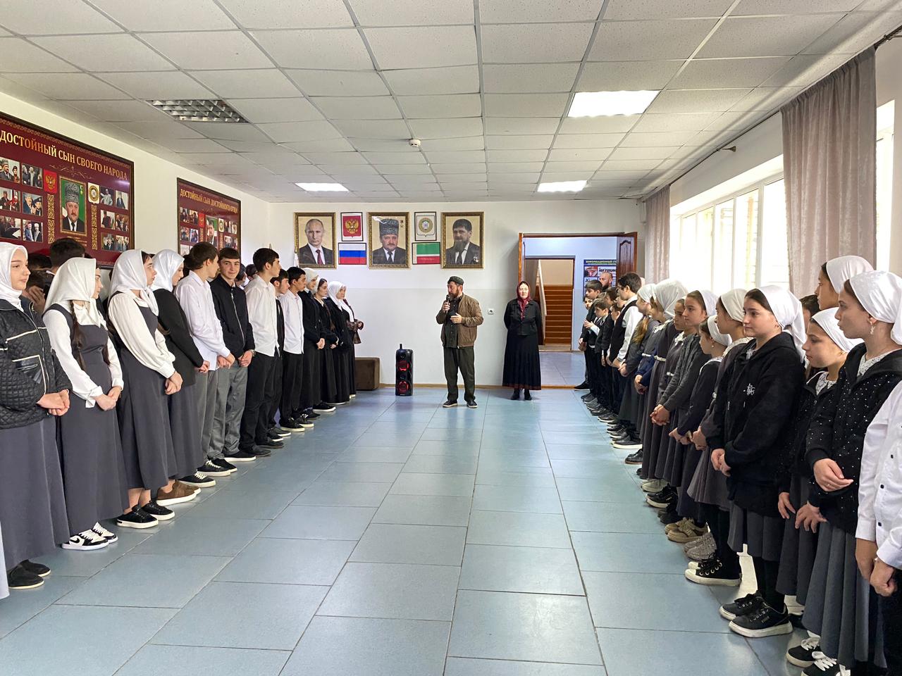 в рамках реализации Единой Концепции духовно-нравственного воспитания и по поручению Муфтия ЧР Межиева Салаха-Хаджи, с целью укрепления имана, привития любви к Корану и укрепления единства среди учащихся и педагогов, прошло массовое мероприятие по духовно-нравственному воспитанию.