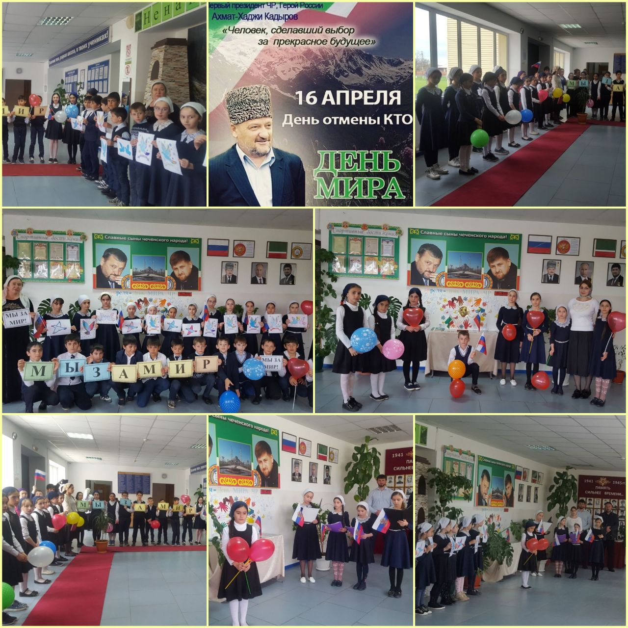 14 апреля проведена торжественная линейка, приуроченная Дню мира на которой присутствовали директор школы Амиева Л.А., заместитель директора по воспитательной работе Джанхотова А.С., педагог организатор по ДНВиР Лечиев Я.А., учителя и обучающиеся школы. Выступая на торжественной линейке, ведущие рассказали учащимся о значимости дня отмены КТО, отметив, что отмена КТО является заслугой нынешнего Главы Чеченской Республики Р.А. Кадырова и его команды.